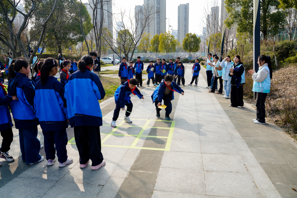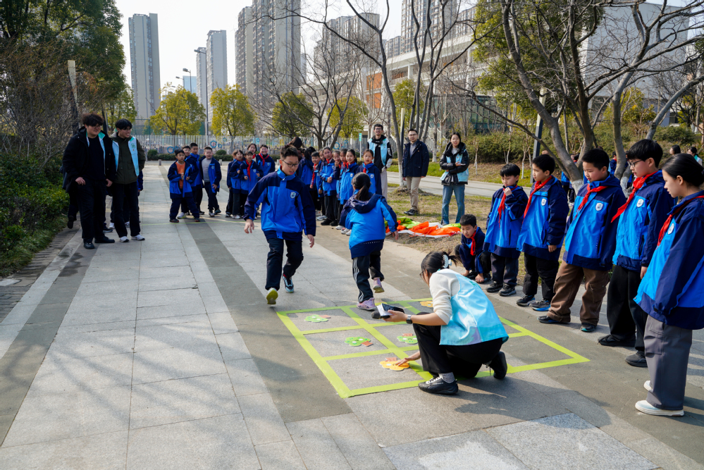 如果说养护绿植是温柔的守护,那么接下来的趣味游戏则将现场气氛彻底点燃。在“‘碳’锁森林——井字棋接力跑”环节,志愿者们化身裁判,小选手们分组冲刺。他们既要快速放置“树形棋子”布局,又要机敏地干扰对手连线。奔跑的脚步声、思考的皱眉、获胜的欢呼……在这场体能与智慧的较量中,孩子们潜移默化地领悟了“碳”平衡的深刻智慧。获胜队伍手中的种子纸奖牌和低碳大礼包,是这个春日里最甜蜜的嘉奖。